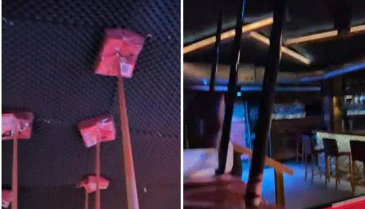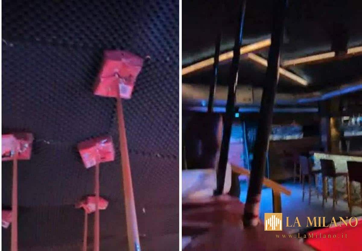Nelle immagini si vedono stecche da biliardo appoggiate su sgabelli, utilizzate come supporto improvvisato per tentare di fissare nuovamente le schiume acustiche al soffitto del Constellation. Un intervento di fortuna, lontano dagli standard di sicurezza richiesti a un locale aperto al pubblico.