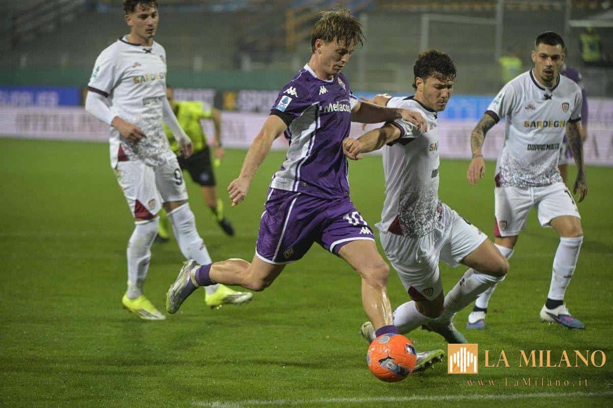 Buona gara giocata sulle ripartenze del Cagliari che va a segno al 31′ con Kiliçsoy e al 47′ con Palestra, al primo gol in Serie A. Non basta ai viola la rete di Brescianini al 74′, nonostante alcune buone occasioni respinte da Caprile.