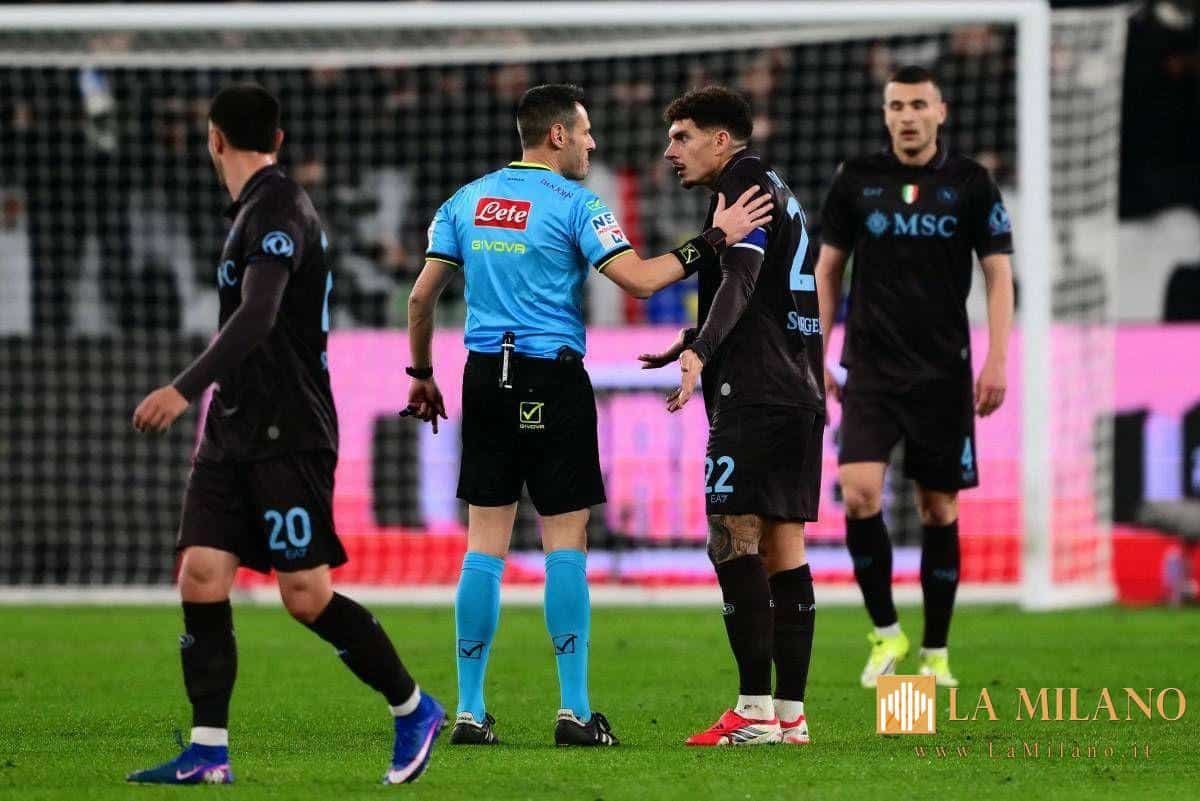 Accade tutto al 39′. Una palla vagante in area bianconera provoca un doppio contatto, giudicato quantomeno sospetto dalla panchina partenopea: Bremer contrasta con forza Hojlund, mentre Kalulu si scontra con Vergara. I giocatori cadono a terra e alzano le braccia in evidente segno di protesta, ma l’arbitro Mariani lascia proseguire.