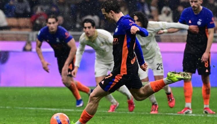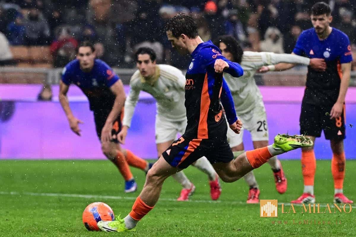 L’episodio che cambia l’inerzia del match arriva al 37′ del primo tempo. Dimarco calcia da fuori e trova la bella parata di Scuffet, poi la difesa del Pisa spazza ma il pallone finisce nei piedi di Carlos Augusto, che si coordina e tira di destro, trovando però la scomposta opposizione di Tramoni. L’attaccante toscano colpisce il pallone con il braccio, aperto e in posizione innaturale, dopo che la sfera era carambolata anche sul petto del giocatore. L’arbitro Marcenaro non ha dubbi e indica il dischetto, decisione poi confermata dopo il check del Var, tra le proteste dei calciatori e della panchina del Pisa, con Gilardino anche ammonito nel caos.