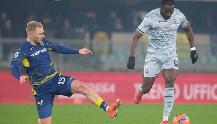 Bella vittoria dell’Udinese, che batte 1-3 il Verona al Bentegodi nel posticipo del lunedì del campionato di Serie A. A segnare per i friulani Arthur Atta al 23′, Alessandro Zanoli al 66′, Keinan Davis al 90′. Per la squadra di Zanetti, alla quarta sconfitta interna di fila, Gift Orban al 26′.