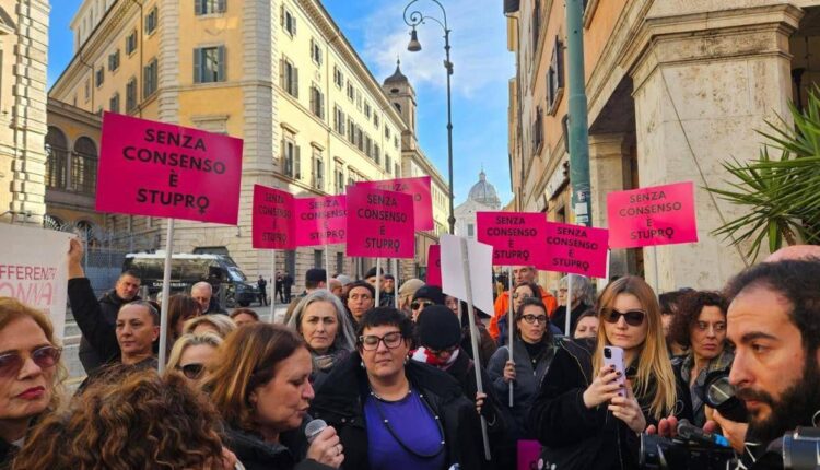Manifestazione di protesta di fronte all’ingresso principale del Senato, su Corso Rinascimento, contro il testo di legge sulla violenza contro le donne, in discussione in queste ore a Palazzo Madama. Attiviste di ‘Non una di meno’, circa un centinaio di persone, stanno mostrando cartelli e urlando slogan, mettendo nel mirino in particolare il testo a firma della leghista Giulia Bongiorno, dove non compare più il termine ‘consenso’. ‘Senza consenso è stupro’ si legge in uno dei cartelli in piazza. Alcuni esponenti del Pd, tra cui il capogruppo del partito Francesco Boccia e la senatrice Valeria Valente, sono in piazza. Con loro anche esponenti di Avs e del M5S.