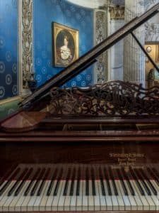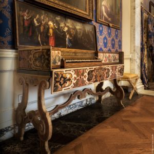 Al termine di questo percorso potrete ammirare il dipinto di Evaristo Baschenis, Strumenti Musicali, elegante natura morta a tema musicale. Nella vicina sala dell’Esedra, infine, potete trovare il pianoforte “gran coda” Steinway appartenuto al celebre compositore Franz Liszt.”