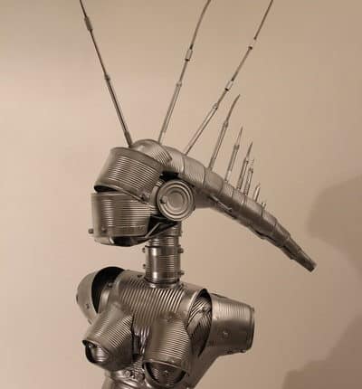 Siamo in un ambito artistico compositivo totalmente differente dalla scultura classica, seppure questa disciplina possiamo dire esserne visivamente l’origine: la produzione di Francesco Mirarchi si affida alla composizione di materiali di riciclo, il riuso, in un’ottica che si astrae dalla visione stereotipata e generalizzata che tale pratica sta assumendo e ha assunto nel corso degli ultimi anni.