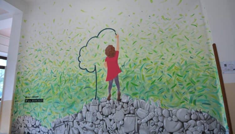 Si tratta dell’ultimo dei tre murales realizzati a seguito del concorso ideato per l’anno scolastico 2019-2020, che ha visto sfidarsi 80 classi di 22 Scuole secondarie di I grado sul piano della creatività, per creare un bozzetto di murale su tematiche ambientali, come la raccolta differenziata, lo spreco alimentare e i cambiamenti climatici. Gli altri due vincitori del concorso sono stati dipinti nelle scorse settimane sotto la guida esperta degli ecodesigner del “Vespaio”: “L’orca di plastica” dell’Istituto San Giuseppe e “Voltare pagina” dell’Ics Don Orione/Da Vinci.