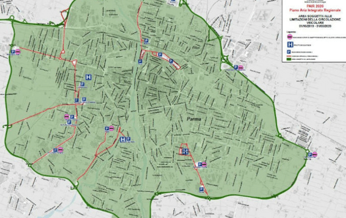 Possono circolare: veicoli benzina Euro 3 o superiori; veicoli diesel Euro 5 o superiori; cicli e motocicli Euro 2 o superiori. Le auto potranno raggiungere i parcheggi scambiatori: via Emilia Ovest, via Traversetolo-Esselunga (parcheggio scambiatore Sud – Est), Cavagnari, Palasport e Via Confalonieri. Inoltre è possibile accedere con auto soggette al divieto anche ai due parcheggi coperti del Duc – Direzionale Uffici Comunali, da viale Mentana, ed all’attiguo Dus, da viale Fratti – che saranno, quindi, percorribili. A questi si aggiungono i parcheggi scambiatori Nord, Est e Sud, il parcheggio di strada dei Mercati e quello di via Mantova-via Scola. Sarà anche utilizzabile il parcheggio Toschi, raggiungibile solo percorrendo viale Europa, via IV Novembre in entrata, viale Toschi e viale Bottego in uscita e Park Stazione FS via Villa Sant’Angelo. Sarà raggiungibile il parcheggio dell’Ospedale Maggiore di Via Volturno, Via Abbeveratoia, mediante itinerario indicato nel testo del provvedimento. Sarà inoltre raggiungibile il parcheggio di Viale della Villetta attraverso Strada Farnese e Viale della Villetta e il parcheggio di Piazza Lago Santo (fronte opposto “Piccole Figlie”) attraverso Strada Farnese,Via Baganza e Via Po. I parcheggi scambiatori in città sono 8 e gli autobus che li collegano si muovono su tre assi: Nord – Sud, Sud est – Sud Ovest e Est – Ovest.