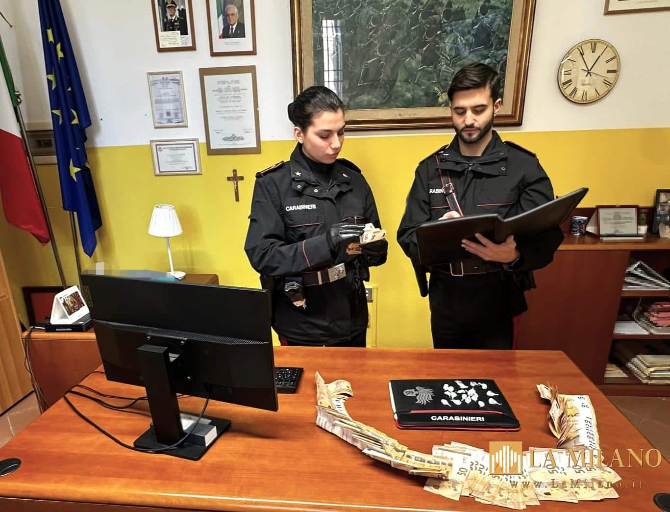 Nel corso della perquisizione domiciliare sono stati recuperati 19 involucri termosigillati contenenti cocaina, per un peso complessivo di circa 10 grammi ed una cospicua somma di denaro contante, pari a 8.000 euro, ritenuta provento dell’attività di spaccio.