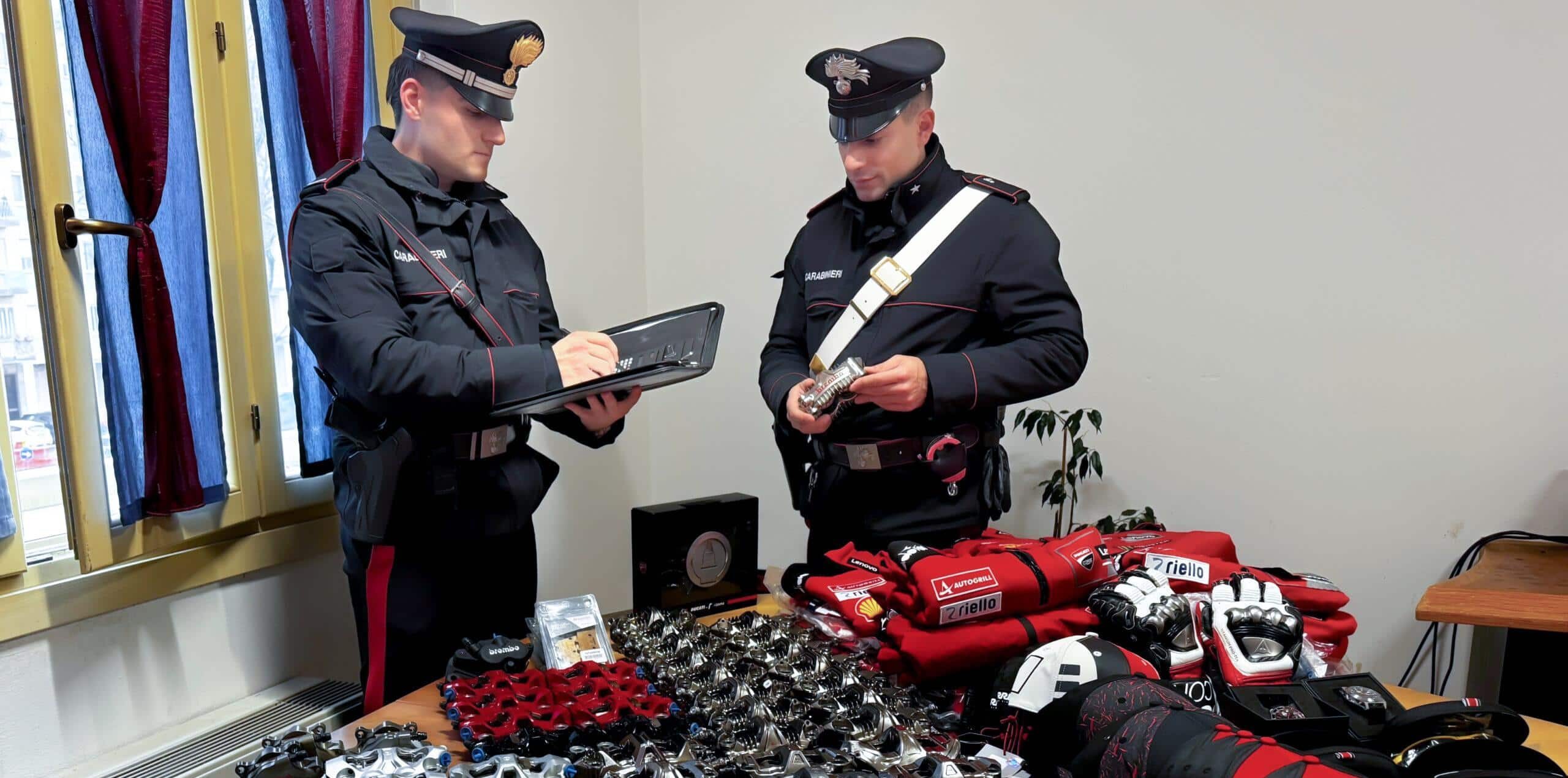 Carabinieri scoprono pezzi da corsa rubati durante una perquisizione delegata dalla Procura di Bologna.