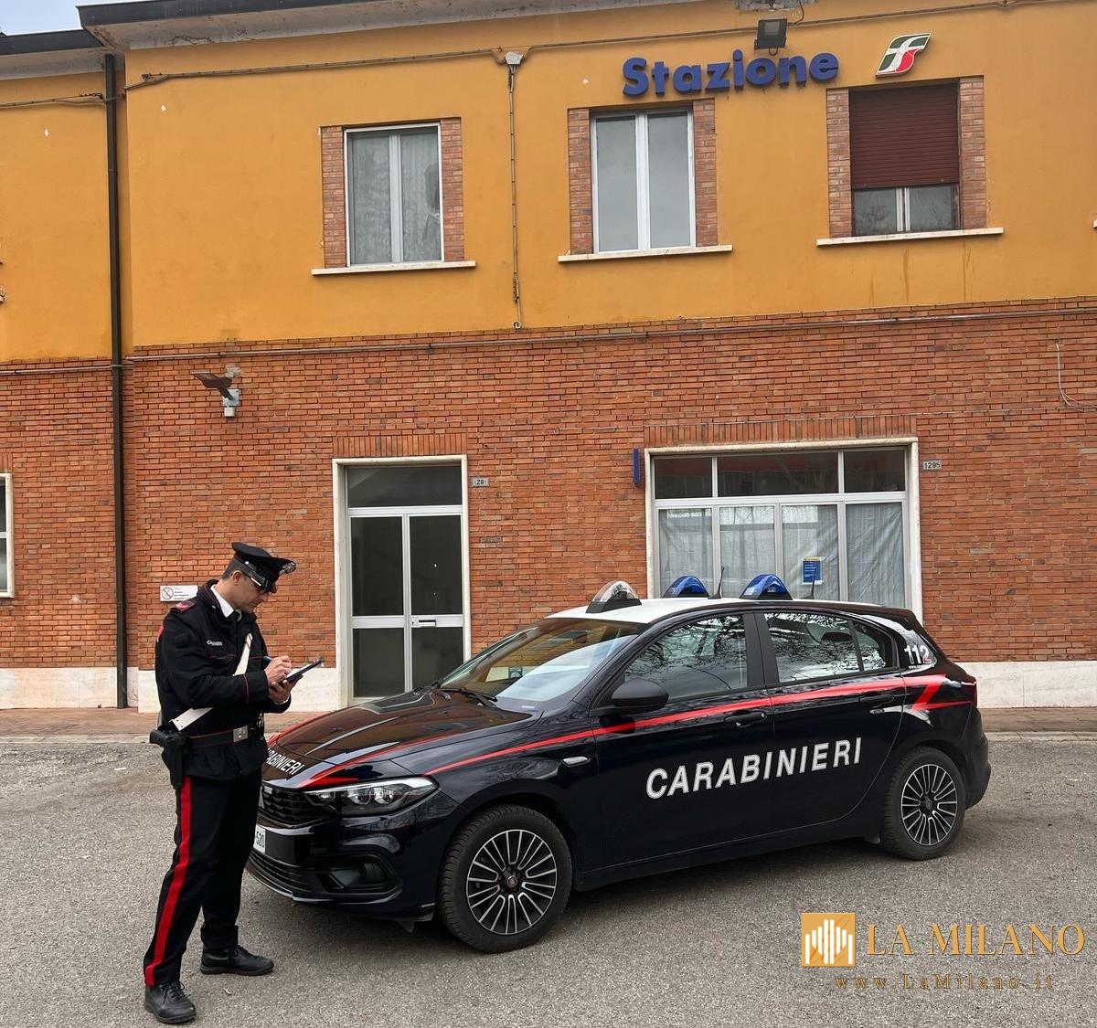 Carabinieri di Castel Guelfo e Imola intervengono su un treno fermato per la sicurezza dei passeggeri, dopo l'aggressione di un uomo che aveva preso due estintori