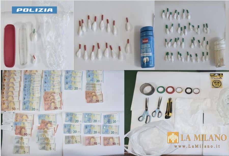 Nel corso della perquisizione, gli agenti hanno rinvenuto sostanze stupefacenti già suddivise in dosi e pronte per essere immesse sul mercato. In particolare sono stati sequestrati 35 grammi di cocaina e 8 grammi di hashish, oltre a materiale utile per il confezionamento delle dosi e una somma di denaro contante pari a 1.500 euro, ritenuta provento dell’attività di spaccio.
