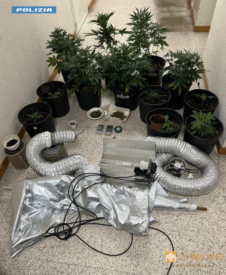 All’interno dell’appartamento gli agenti hanno rinvenuto e sequestrato due “grow box” complete di lampade e termometri, utilizzate per la coltivazione controllata della cannabis. Sono state inoltre trovate 12 piante di marijuana di varie dimensioni, oltre a 32,72 grammi di infiorescenze, 1,66 grammi di hashish e 36,88 grammi di semi. Nel corso del controllo sono stati sequestrati anche due bilancini di precisione e materiale per il confezionamento, elementi ritenuti indicativi dell’attività di spaccio.