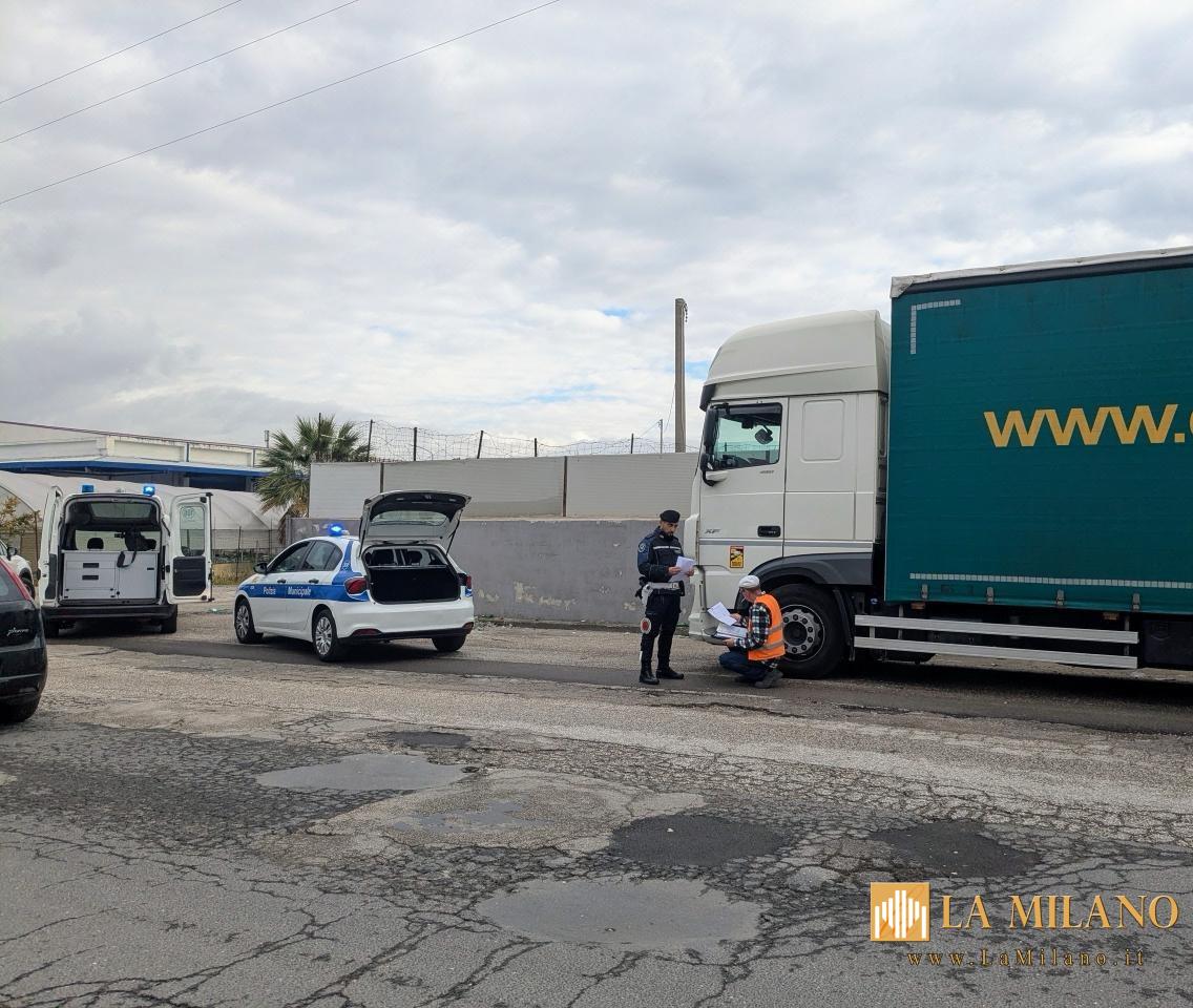 La Polizia Locale di Napoli, in collaborazione con il Ministero dei Trasporti, ha eseguito una attività di controllo su 35 mezzi pesanti nelle aree della Zona Industriale e del quartiere di Poggioreale, con particolare riferimento a via Domenico De Roberto, via Traccia a Poggioreale e via Ferrante Imparato.