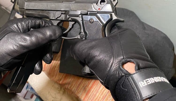 • Una pistola calibro 8, marca Bruni, modello 315, con canna modificata, completa di 5 cartucce calibro 6,35 e 5 cartucce calibro 9 corto (consegnata spontaneamente dall’uomo prima della perquisizione);