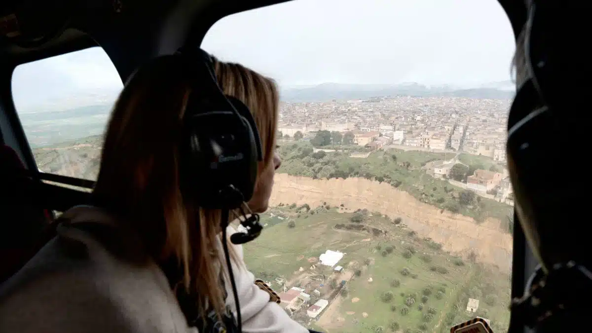 Il Presidente del Consiglio Giorgia Meloni si è recata questa mattina in Sicilia per un sopralluogo aereo nelle zone maggiormente colpite dall’eccezionale ondata di maltempo che nei giorni scorsi ha investito l’Isola, in particolare a seguito del passaggio del ciclone Harry. Il sorvolo in elicottero ha consentito di osservare dall’alto l’estensione dei danni e la criticità dei fenomeni franosi e idrogeologici che stanno interessando ampie porzioni del territorio.