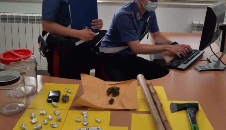 I militari hanno fermato il soggetto nel corso di un servizio di controllo alla circolazione stradale e, conoscendone i precedenti, hanno deciso di procedere con una perquisizione personale e veicolare. Il sospetto si è rivelato corretto, poiché poco dopo, celate all’interno degli slip indossati dall’uomo, i Carabinieri hanno rinvenuto 6 dosi di marijuana del peso di 6 grammi circa e, all’interno del portabagagli dell’autovettura, due bastoni in legno della lunghezza di circa 70 centimetri ed un’ascia.