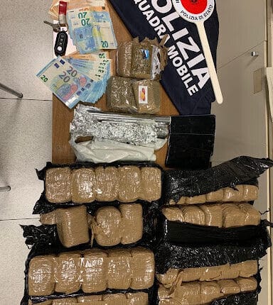 Bergamo, nell’ambito dei servizi di controllo del territorio predisposti dal Questore della Provincia di Bergamo Maurizio Auriemma e finalizzati al contrasto della microcriminalità, nella giornata di mercoledì 1 dicembre la Squadra Mobile ha arrestato nel comune di Osio Sopra due cittadini marocchini, classe 1993 e 1992 – uno dei quali con precedenti specifici – trovati in possesso di 20,17 kilogrammi di hashish, materiale per il confezionamento dello stupefacente e denaro contante per un totale di 1455,00 euro, ritenuto frutto dell’attività di spaccio.