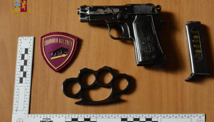 A questo punto, i poliziotti, che avevano seguito attentamente ogni suo movimento, recuperavano l’oggetto che risultava essere una pistola “Beretta” cal. 7,65, con matricola abrasa sia sull’otturatore che sulla canna, e 7 colpi inseriti nel caricatore.