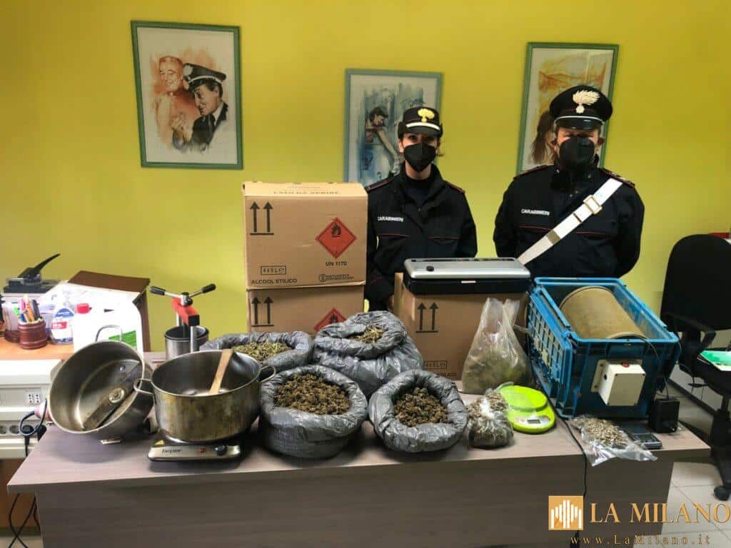 Nella circostanza, alle ore 12:00 circa, durante il previsto controllo i Carabinieri notavano presso l’abitazione di questi la presenza di un noto assuntore di sostanze stupefacenti e, per tale motivo decidevano di effettuare il controllo dell’abitazione del 63enne. All’esito del controllo veniva rinvenuto un vero e proprio laboratorio per la produzione di hashish, infatti erano presenti: