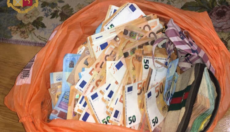 Il cane LEONE addestrato per la ricerca di stupefacenti si è soffermato in molte parti dell’abitazione per poi raspare nervosamente in un angolo dell’armadio dove, togliendo una listarella di legno inchiodata al mobile, sono state rinvenute, stipate all’interno di una fessura dove sicuramente era presente sino a poco prima la droga, numerose banconote di diverso taglio per una somma totale di 29.780 euro probabile provento dell’attività di spaccio.