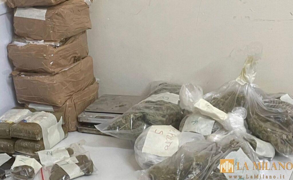 Sequestrati anche 2 coltelli da cucina e forbici utilizzati per il taglio dello stupefacente.