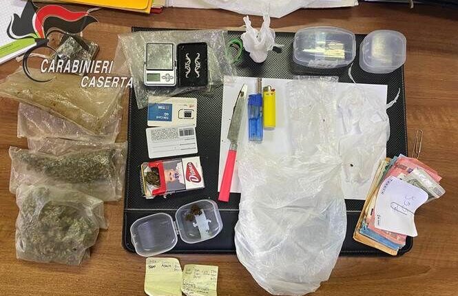 I militari dell’Arma atteso il fare sospetto dell’uomo lo hanno sottoposto a controllo rinvenendo, a seguito di perquisizione personale e domiciliare gr 63,25 di hashish, gr 79,7 di marijuana, gr 3,5 di cocaina, un bilancino di precisione, materiale vario per confezionamento delle dosi e €955,00 in contanti.