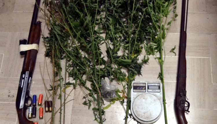 Nel corso della perquisizione effettuata presso il domicilio del predetto P.G., gli investigatori rinvenivano nr 2 fucili, di cui uno calibro 12 semiautomatico, con annesse 11 cartucce del medesimo calibro occultato dietro un divano sito nel magazzino adiacente all’abitazione. Le successive perquisizioni, estese a locali e depositi agricoli rientranti nella disponibilità di P.G., consentivano di rinvenire n° 8 piante di marijuana in florescenza, con altezza variabile da 0,70 cm a 140 cm, nonché ulteriori grammi 5,5 della stessa sostanza e n° 1 bilancino di precisione perfettamente funzionante.