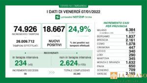 Coronavirus in Lombardia, i dati di venerdì 7 gennaio 2022