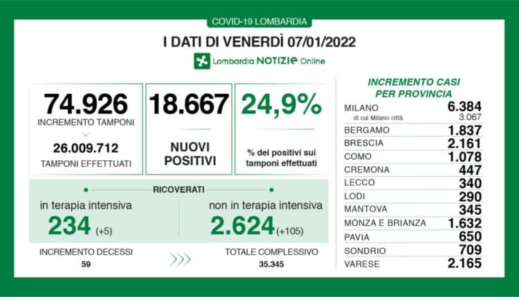 Coronavirus in Lombardia, i dati di venerdì 7 gennaio 2022