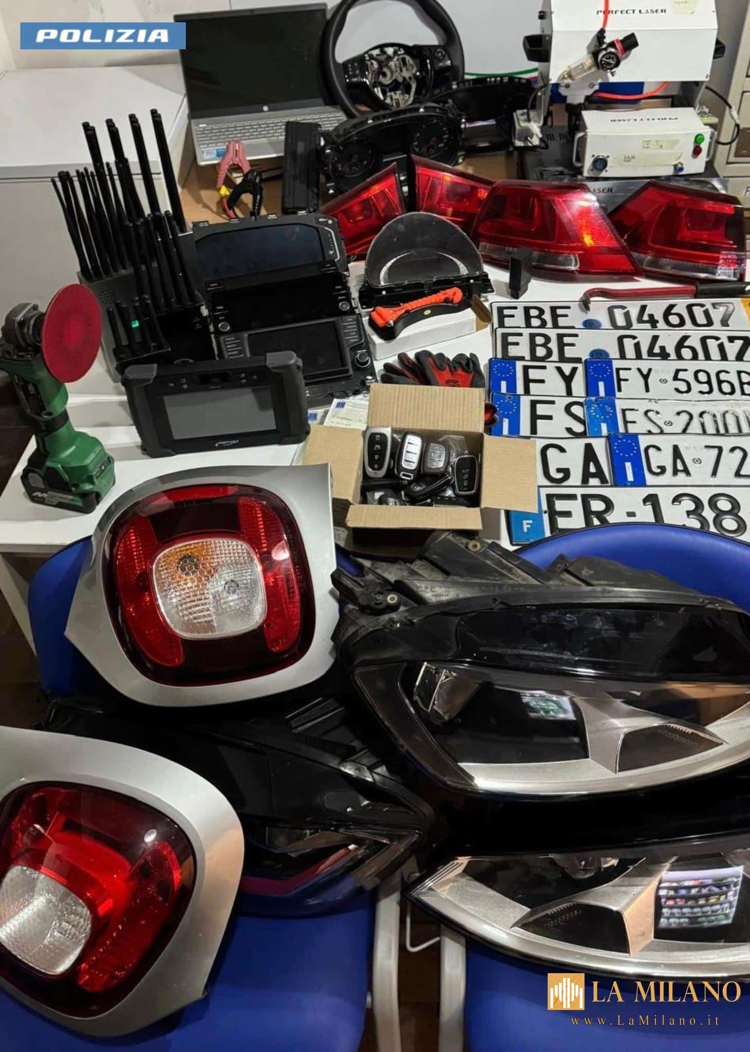 italiane ed estere da applicare per rimettere in circolo le autovetture rubate, oltre a gruppi ottici di autovetture, specchietti retrovisori, volanti ed altri accessori automobilistici.