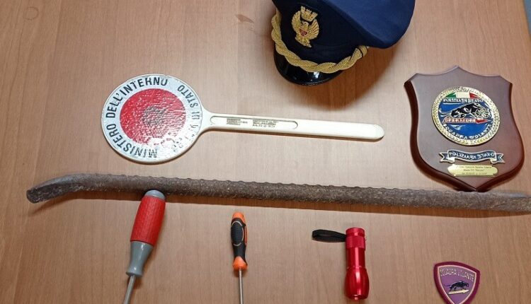 Rinvenuti nell’abitacolo un grosso e rudimentale piede di porco, una torcia led, un cacciavite di 27 cm ed uno di 18 cm.