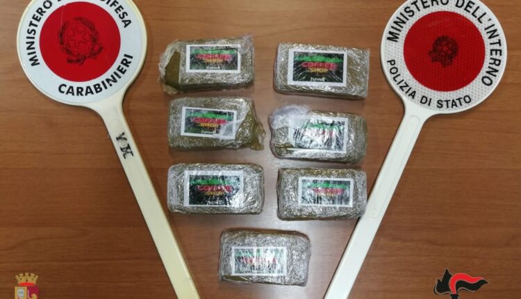 Gli operanti, nel corso di un servizio congiunto finalizzato alla repressione dei reati concernenti il traffico di sostanze stupefacenti, hanno notato un uomo, noto per precedenti specifici, in attesa all’interno del proprio veicolo presso un parcheggio. L’atteggiamento ha insospettito gli agenti che rimanevano in osservazione. Poco dopo giungeva infatti un furgone bianco con tre persone a bordo, una delle quali consegnava frettolosamente una busta nelle mani del pregiudicato 41enne. A quel punto gli operatori hanno bloccato i quattro e, procedendo a perquisizione personale e veicolare, hanno rinvenuto una busta contenente 7 panetti di hashish per il peso complessivo di oltre 700 grammi. Per i quattro è scattato l’arresto e su disposizione dell’autorità giudiziaria sono stati condotti presso le rispettive abitazioni in regime degli arresti domiciliari.