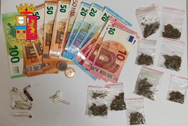 Inoltre, nascoste nelle 3 cover dei 3 cellulari in possesso ai due fermati, i poliziotti hanno rinvenuto circa 10 grammi di marijuana, circa 1 grammo di cocaina e circa 4 grammi di hashish, tutta sostanza stupefacente già suddivisa in dosi pronta per essere spacciata.