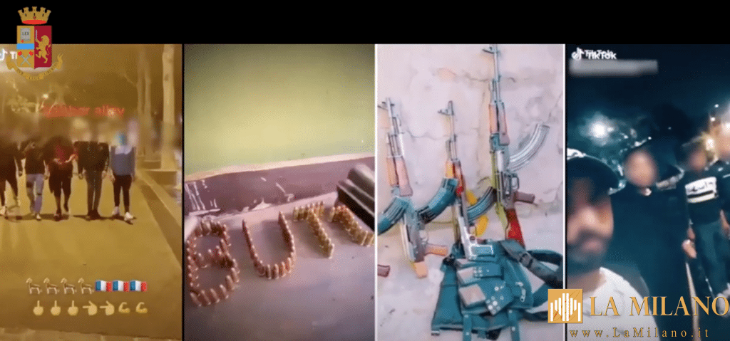 Sugli account Facebook, Tik Tok e su un canale You Tube, infatti, T.Y. postava, con cadenza giornaliera, numerosi video nei quali era spesso ripreso avvolto da tunica e copricapo neri mentre recitava testi inneggianti alla violenza oppure mentre, in compagnia di connazionali, in strada o all’interno di abitazioni, brandiva machete o coltelli di grandi dimensioni mimando insieme agli altri il “taglio della gola”.