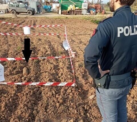 Gli agenti intervenuti sul posto hanno provveduto alla messa in sicurezza dell’area per la salvaguardia dell’incolumità pubblica e la Questura ha immediatamente attivato l’iter per l’intervento di militari specializzati dell’Esercito per la successiva rimozione dell’ordigno, con il coordinamento della Prefettura in collaborazione con tutti gli altri enti interessati.