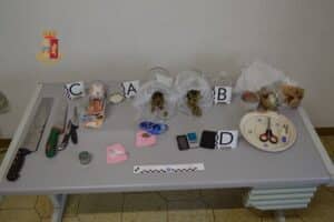 Nel corso di una perquisizione eseguita presso la sua abitazione, estesa anche al box auto di pertinenza, gli agenti hanno scoperto un piccolo laboratorio finalizzato al confezionamento di sostanza stupefacente di vendita “al minuto”, sequestrando un quantitativo pari a circa 90 grammi di marjiuana, oltre ad altro materiale per la pesatura ed il successivo confezionamento nonché la somma complessiva di denaro contante pari a 465,00 euro, anch’essa sequestrata penalmente in quanto ritenuta essere provento dell’attività illecita di “spaccio”.