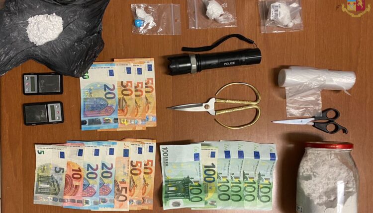 A seguito di perquisizione avvenuta all’interno delle camere dei due soggetti, gli investigatori hanno rinvenuto diverso materiale utilizzato per il confezionamento delle dosi, alcuni bilancini di precisione, 45 grammi di cocaina, alcune dosi già confezionate, quasi un chilo di sostanza da taglio, circa mille euro in contanti ed un Taser.