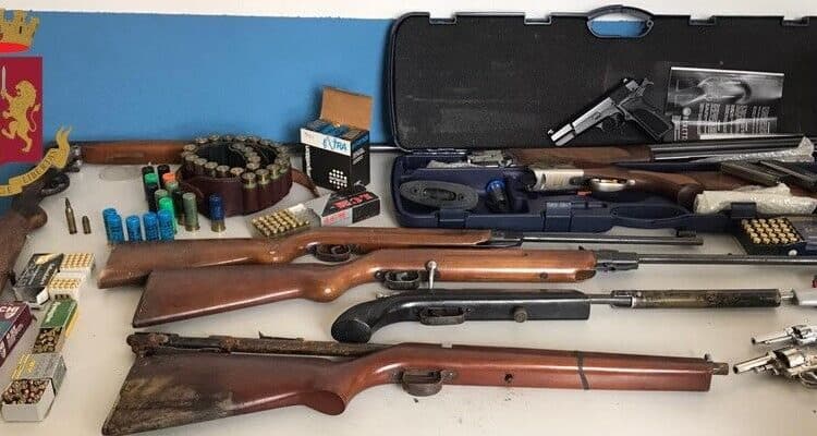 ove sono state trovate 4 armi corte, alcune con matricola abrasa altre mancante, 4 armi lunghe, un’arma modificata con silenziatore e oltre 200 munizioni di vario