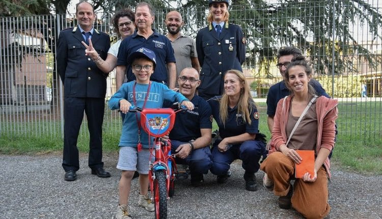 La bicicletta viene donata al bambino insieme al berretto della Polizia Locale e ad un biglietto con queste parole: “Ciao piccolo grande uomo, qualcuno giovedì pomeriggio ha provato a rovinarti la giornata, ma non c’è riuscito. Ti chiediamo scusa noi perché ti ha rubato, oltre alla bicicletta, il tuo bel sorriso nel giorno del tuo compleanno. Scusa per quella cattiveria che non sei riuscito a capire, e scusa perché ha provato ad insegnarti che il mondo è dei furbi. Ma non è così. Il mondo è dei giusti e degli onesti come te. Ora hai un bolide nuovo, un bolide della polizia locale. Buon compleanno dai tuoi amici vigili”.