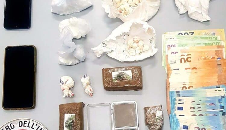 Gli agenti lo hanno fermato proprio mentre usciva dalla sua abitazione. Nella tasca dei bermuda hanno rinvenuto un involucro di cocaina di circa 1 grammo: hanno proceduto, quindi, alla perquisizione domiciliare che ha permesso di rinvenire nella camera da letto un sacchetto con diversi involucri e dosi già pronte di cocaina per un peso complessivo di 450 grammi, panetti di hashish per circa 230 grammi, 6 proiettili calibro 9×21, materiale per il confezionamento e bilancini di precisione. All’interno dell’armadio anche 5 mila euro in contanti.