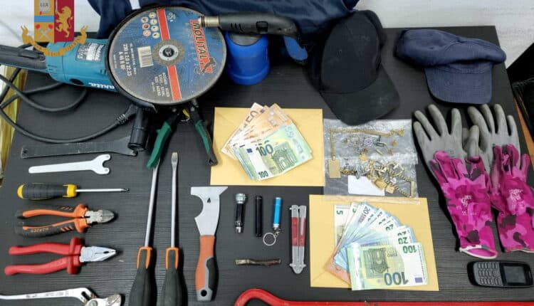 Subito bloccati dai poliziotti che li attendevano, i due uomini, nel corso dell’immediato controllo, sono stati trovati in possesso di oltre mille euro in contanti e numerosi preziosi: spille, bracciali, orecchini, anelli e catenine, dei quali non hanno fornito una giustificazione per il possesso. Nell’automobile, inoltre, gli agenti hanno rinvenuto attrezzi per lo scasso – fiamma ossidrica, flessibile, piede di porco, guanti,
