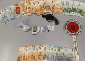 Mercoledì 9, invece, gli agenti del “gruppo antispaccio” hanno individuato un pusher italiano 55enne, M.F.E.C., nullafacente e con precedenti penali, mentre cedeva un grammo di cocaina. Ne aveva altri 5 con sé e, in casa, i poliziotti hanno rinvenuto e sequestrato altri 36 grammi di cocaina, 4mila euro e una pistola revolver lanciarazzi trovata in un cassetto della camera da letto. L’uomo è stato arrestato per spaccio di droga e detenzione di arma da sparo.