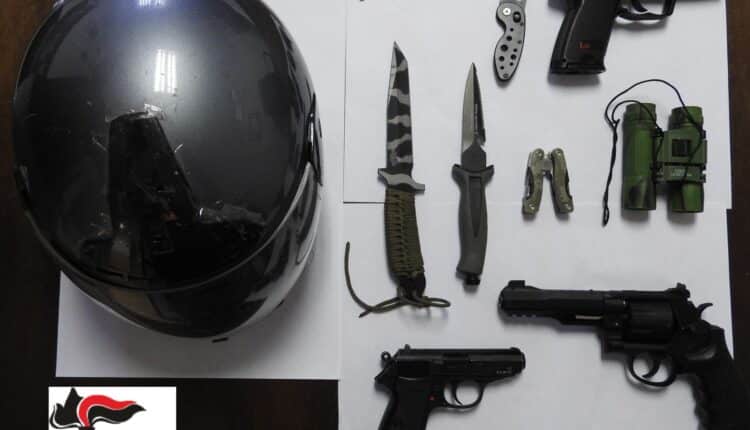 L’arrestato era solito eseguire accurati sopralluoghi in corrispondenza degli orari di chiusura degli esercizi commerciali prescelti, tant’è che nella serata di sabato 7 u.s. l’uomo, senza mai essere stato perso di vista dagli investigatori, dopo essersi soffermato nei pressi di due gelaterie ubicate rispettivamente nel centro di Mariano del Friuli (GO) e di Manzano (UD), si è poi posizionato con la propria autovettura nel piazzale antistante una terza gelateria di Buttrio (UD), ove già nel corso della serata del 26 luglio aveva effettuato un sopralluogo. I militari lo hanno notato mentre, a bordo della macchina, osservava a debita distanza con un binocolo, rinvenuto poi nella sua disponibilità nel corso delle operazioni di arresto, l’eventuale presenza delle Forze dell’Ordine nei pressi dell’esercizio commerciale. Verso la mezzanotte di sabato, i militari, intuendo che potesse trattarsi dell’obiettivo prescelto dal rapinatore e, dopo averlo visto scendere dall’auto ed indossare un casco e avvicinarsi pericolosamente alla gelateria passando a piedi tra le macchine lasciate in sosta nei pressi dell’esercizio, sono intervenuti traendolo in arresto. Nel corso di una prima perquisizione dell’indagato e dell’autovettura dallo stesso utilizzata, i Carabinieri hanno rinvenuto nella sua disponibilità due pistole giocattolo prive del previsto tappo rosso, alcuni coltelli di tipo militare ed il medesimo casco visibile nelle immagini della rapina di Gradisca d’Isonzo. La successiva perquisizione presso l’abitazione dell’uomo, ha consentito di rinvenire gli indumenti indossati nelle rapine per cui si procede nonché una ulteriore replica di pistola semiautomatica ed il telefono cellulare che l’uomo, nel corso dei sopralluoghi e delle rapine, ha sempre lasciato a casa per non essere individuato dagli investigatori.