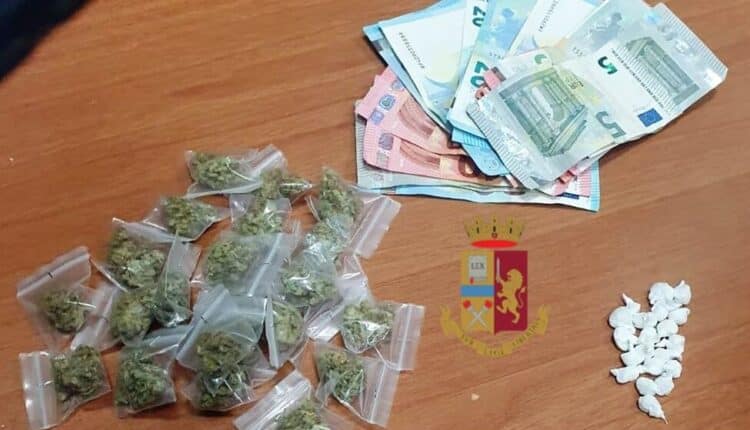 I poliziotti li hanno raggiunti e bloccati trovandoli in possesso di 24 bustine contenenti 24 grammi di marijuana, 20 involucri con 5 grammi circa di cocaina e 315 euro.