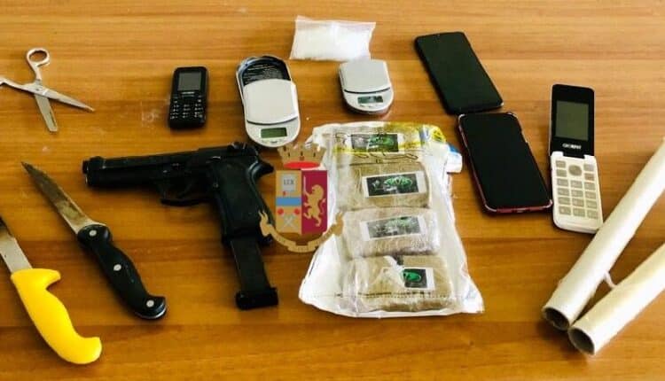 Napoli, ieri mattina gli agenti del Commissariato San Giovanni-Barra con il supporto dell’Unità Cinofila antidroga dell’Ufficio Prevenzione Generale, durante un servizio di contrasto allo spaccio di sostanze stupefacenti, hanno effettuato un controllo in via Luigi Martucci presso l’abitazione di due uomini dove hanno rinvenuto 4 panetti di hashish del peso di 400 grammi circa, una pistola giocattolo priva di tappo rosso, 3 coltelli, 4 cellulari, 2 bilancini di precisione e diverso materiale per il confezionamento della droga.