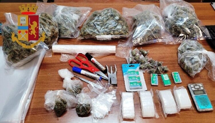 I poliziotti hanno rinvenuto 8 buste contenenti 730 grammi circa di marijuana, 51 involucri con 60 grammi circa della stessa sostanza, un bilancino di precisione e diverso materiale per il confezionamento della droga.