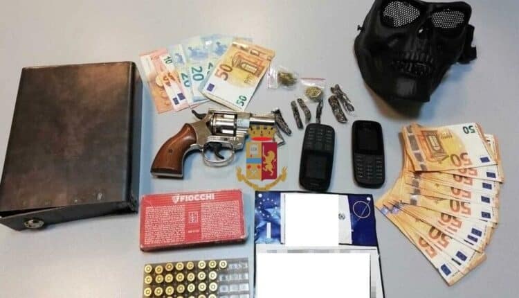 Napoli, ieri pomeriggio gli agenti del Commissariato Vicaria Mercato, durante un controllo in via Sant’Antonio Abate presso l’abitazione di un uomo sottoposto agli arresti domiciliari per associazione per delinquere e truffa, hanno rinvenuto una maschera per travisare il volto, una targa adesiva fotocopiata per motocicli, 2 bustine di cellophane contenenti 2,4 grammi circa di marijuana, 7 stecche di hashish del peso di 16 grammi circa, una pistola replica Olimpic 38 priva del tappo rosso, una cassetta in ferro con 36 cartucce GFL40 S.W, 2 telefoni cellulari e 1200 euro.