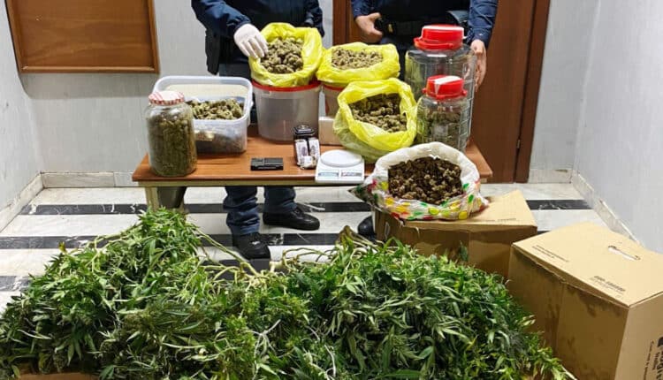 Gli operatori hanno rinvenuto nell’appartamento 9 piante di marijuana del peso complessivo di 12 kg, 8 contenitori con 3 kg della stessa sostanza già essiccata, 3 pezzi di hashish del peso di circa 250 grammi, 2 bilancini di precisione e 3040 euro; hanno