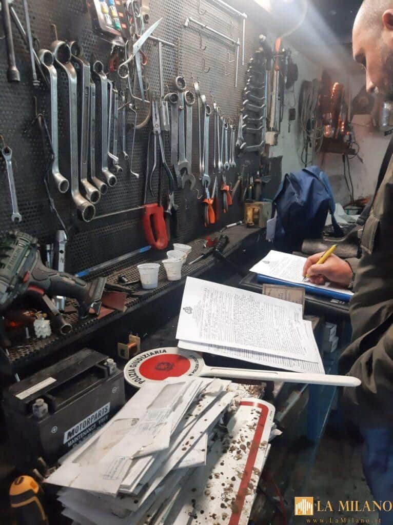 Dal controllo effettuato è emerso che l’attività veniva svolta in assenza di qualsiasi titolo autorizzativo. Non è stata riscontrata alcuna iscrizione al registro della Camera di commercio ed all’Albo delle imprese artigiane. Inoltre l’officina era esercizio senza il prescritto e necessario contratto di smaltimento di rifiuti speciali pericolosi e non pericolosi, prodotti della lavorazione dell’officina.