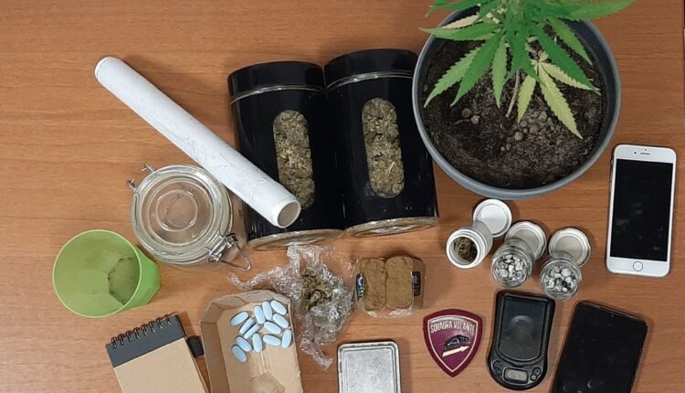 In considerazione delle evidenze emerse, gli agenti procedevano alla perquisizione personale e domiciliare a carico del locatario dell’immobile, che dava esito positivo in quanto, all’interno della sua camera da letto, venivano rinvenuti circa 200 gr. di sostanza stupefacente del tipo marijuana, 100 gr. di sostanza stupefacente del tipo hashish, 6 gr. di sostanza di tipo funghi allucinogeni, alcune pasticche, una piantina di cannabis, denaro per una somma pari a 215 euro e, infine, due bilancini di precisione e del materiale per il confezionamento della sostanza.