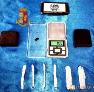 I poliziotti hanno trovato l’uomo in possesso di 6 stecche di hashish del peso di circa 11 grammi mentre, all’interno della cappa aspirante della cucina, hanno rinvenuto un panetto e due pezzi della stessa sostanza per circa 210 grammi e un bilancino di precisione.